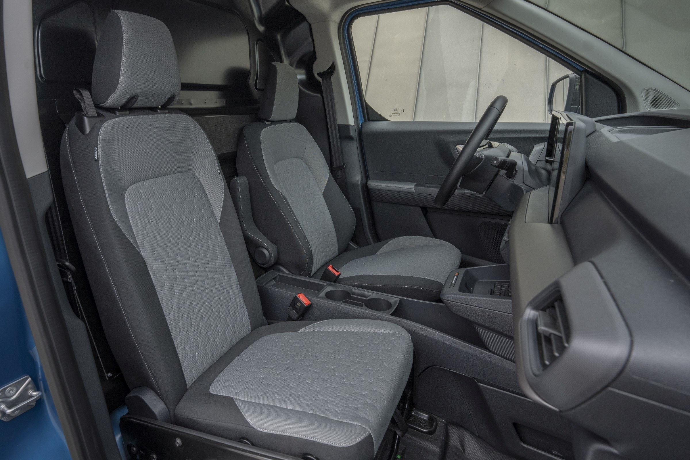 To najmniejszy elektryczny samochód dostawczy Forda. Maluch jest zwinny, wygodny, a przy tym niezwykle pakowny. Ma zwiększoną o 25% w porównaniu do poprzednika przestrzenią ładunkową. To aż 2,9 m³, co pozwala na przewiezienie dwóch europalet, a dzięki nowej funkcji grodzi przelotowej nawet przedmiotów o długości do 2,6 m. Maksymalna ładowność wynosi 701 kg, a dopuszczalna masa przyczepy to 750 kg. Jest też dodatkowy schowek pod przednią maską, idealny dla przechowywania kabli.