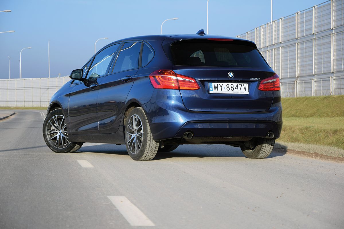 Konstruktorzy układu jezdnego w nowym BMW wykonali kawał dobrej roboty. Active Tourer może się pochwalić znakomicie zestrojonym zawieszeniem i perfekcyjnym prowadzeniem w zakrętach. Mimo sporej wysokości nadwozia i przedniego napędu, wychylanie się nadwozia w czasie jazdy po łukach oraz zjawisko podsterowności są w tym modelu obce nawet podczas gwałtownych manewrów. Wrażenie robi także precyzja sportowego układu kierowniczego (opcja). Oczywiście, możemy zmieniać tryby jazdy, które wyraźnie wpływają na zachowanie samochodu. W naszym odczuciu nie ma obecnie na rynku minivana, który jeździłby równie dobrze. Nie ma również minivana o lepszych osiągach. Dwulitrowy turbodoładowany silnik benzynowy o mocy 231 KM w parze z japońską ośmiobiegową automatyczną skrzynią biegów Aisin tworzą zgrany tandem. Skrzynia nie pracuje tak szybko i pewnie jak automat ZF montowany w innych BMW, ale trudno mieć większe zastrzeżenia. Jednostka napędowa osiąga maksymalny moment obrotowy 350 Nm w zakresie 1250‒4500 obr./min dzięki czemu właściwie w każdym momencie możemy liczyć na znakomite przyśpieszenia. Ten półtoratonowy samochód rozpędza się do setki w 6,6 sekundy i może maksymalnie osiągnąć prędkość 240 km/h. Nawet podróż w pięć osób z bagażami nie wpływa na pogorszenie osiągów. Potężny zapas mocy może się przydać do szybkiego i bezpiecznego wyprzedzania innych pojazdów podczas rodzinnych eskapad. Zużycie paliwa jest w tym modelu dość umiarkowane. W ruchu miejskim Active Tourer spalał ok. 9 l/100 km, a w trasie przy nieśpiesznej jeździe zużycie benzyny spadało do ok. sześciu litrów. Warto dodać, że producent zadbał o znakomite wyciszenie. Silnik po włączeniu nie jest w ogóle słyszalny, a przy prędkościach powyżej 130 km/h spod maski dobiega jedynie szmer znacznie cichszy niż szum powietrza opływającego nadwozie.