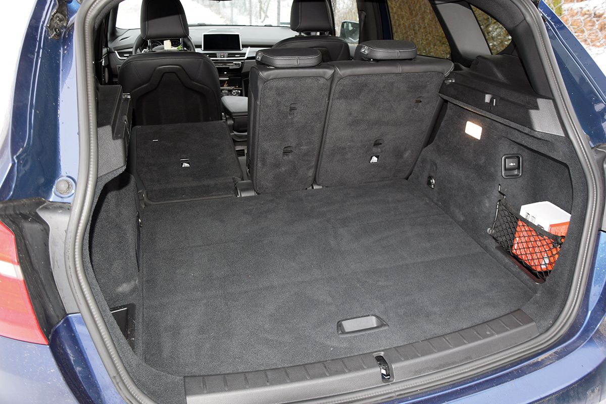 Naturalnie Active Tourer oferuje bardziej przestrzenny bagażnik niż klasyczne kompakty i crossovery. Do ładowni BMW włożymy przedmioty o kubaturze do 468 litrów, a po złożeniu oparć kanapy nawet 1510 litrów. Pod pokrywą bagażnika znajdziemy obszerną wnękę o pojemności 70 litrów z segregatorem na dodatkowe mniejsze przedmioty. Minimalnie, ale jednak, większy jest kufer Mercedesa klasy B (488 l/1547 l). Cenną zaletą BMW jest możliwość składania fotela pasażera z przodu (opcja), dzięki czemu możemy przewieźć przedmioty o długości nawet 240 cm.