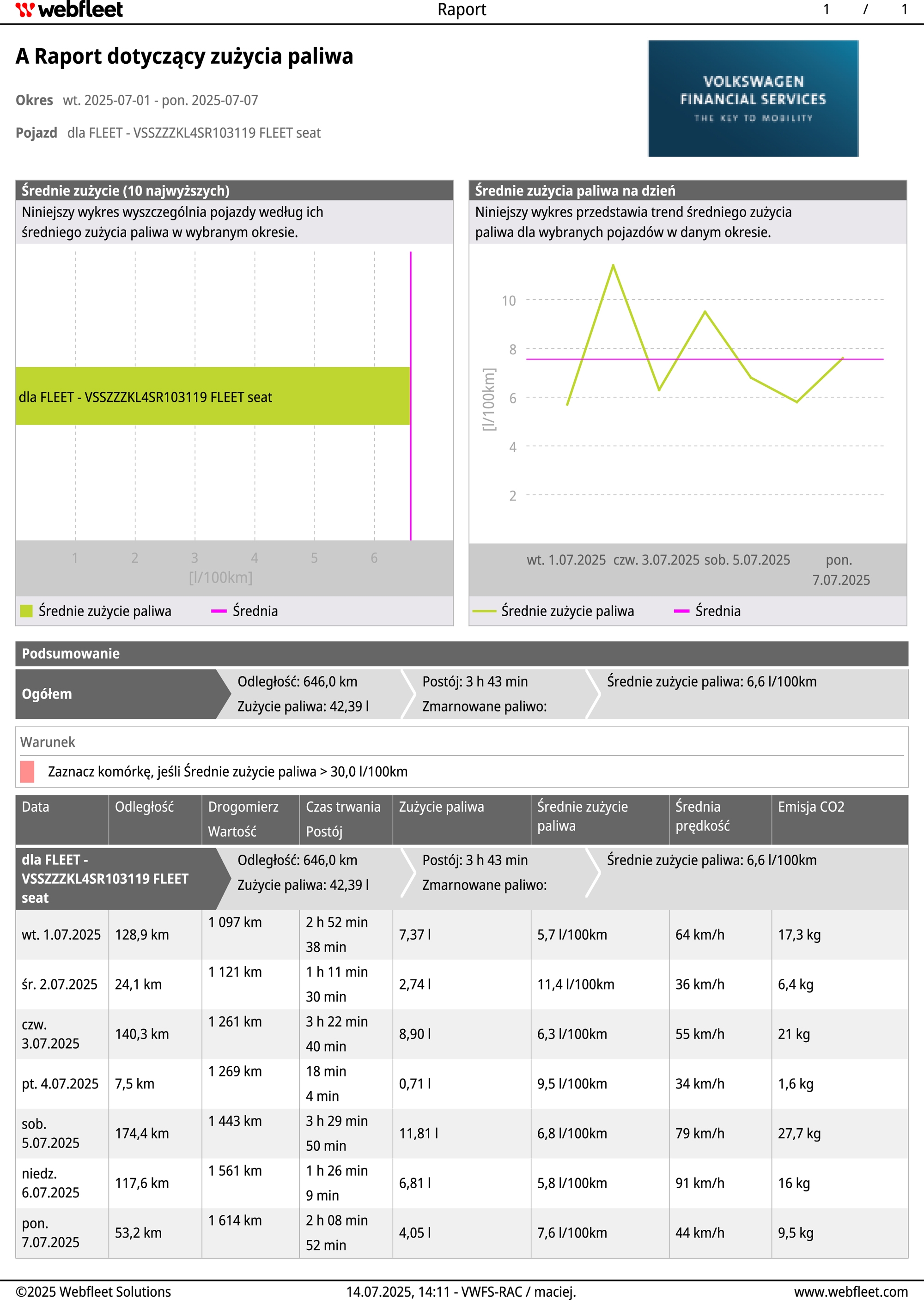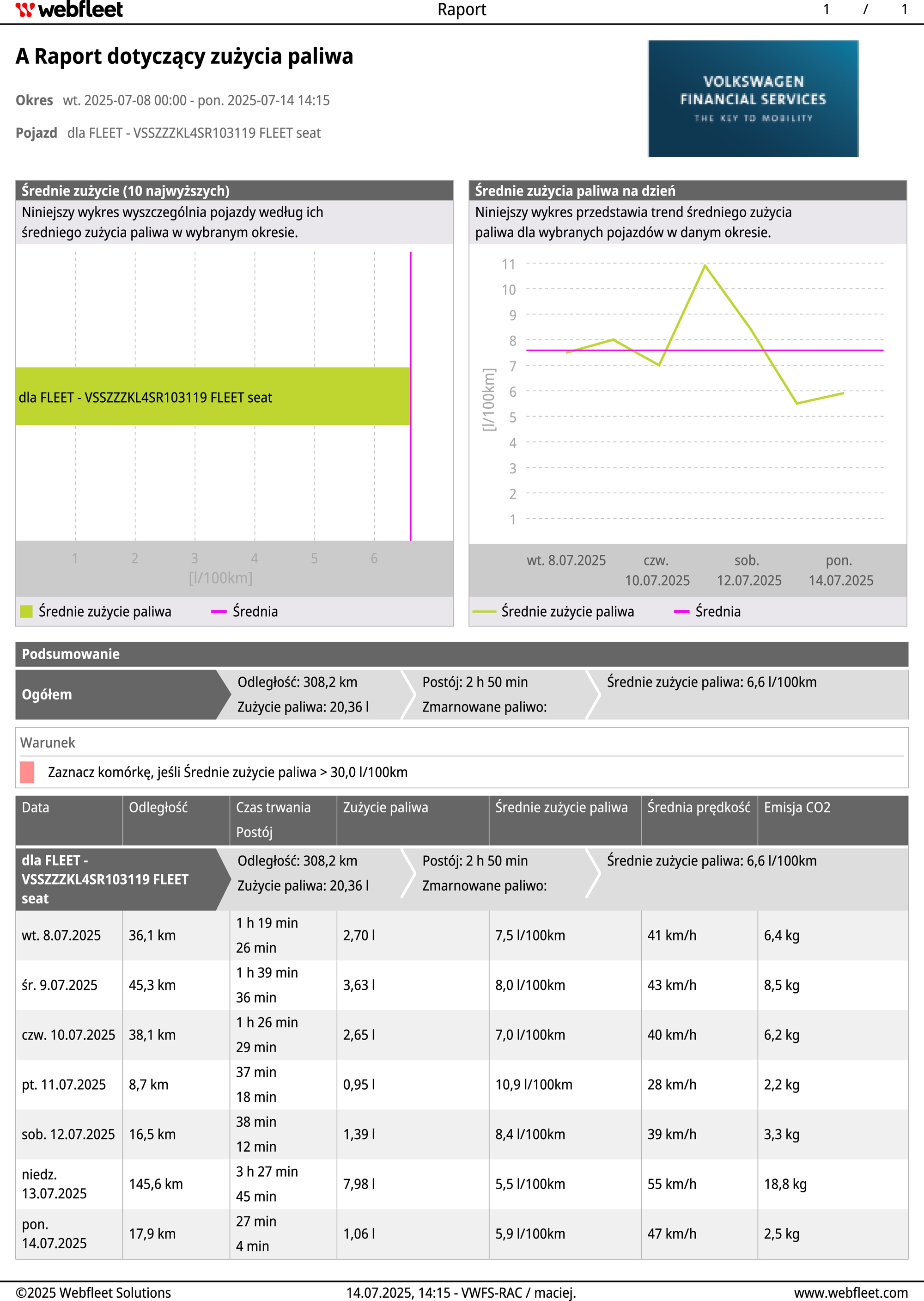 Telematyka dostarcza danych, które umożliwiają zarówno ocenę stanu technicznego pojazdu, jak i analizę wpływu stylu jego użytkowania w rzeczywistych warunkach na ogólne koszty eksploatacji floty. To klucz do świadomego zarządzania flotą i realnych oszczędności. Test przeprowadzony wspólnie z Volkswagen Financial Services na przykładzie Seata Leona ST doskonale pokazał, jak konkretne informacje – takie jak styl jazdy, czas postoju czy zużycie paliwa – mogą przełożyć się na lepsze decyzje strategiczne i większą efektywność operacyjną floty – mówi Dariusz Terlecki, Regional Director Poland & EE, Webfleet.
