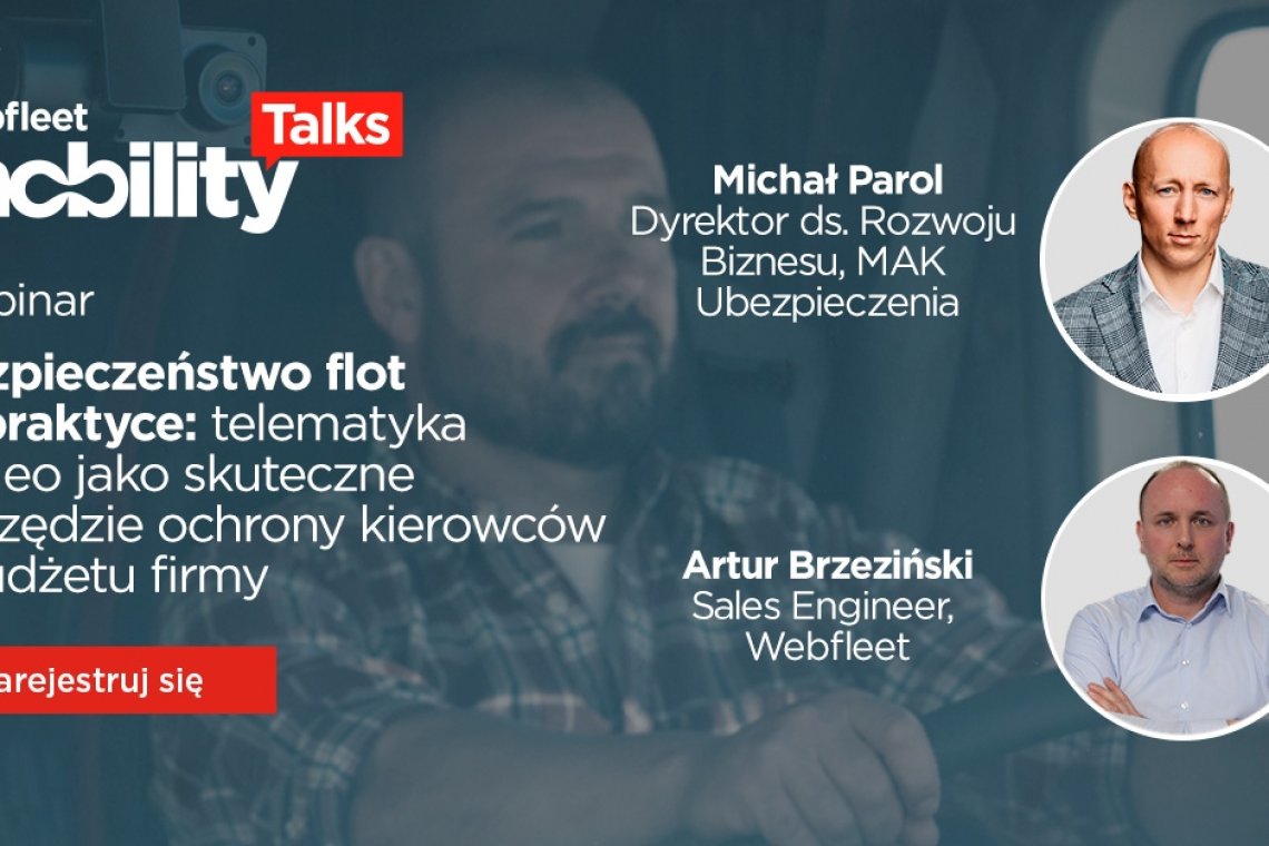 Bezpieczeństwo floty to jedno z kluczowych wyzwań dla każdej firmy zarządzającej pojazdami. Webfleet zapraszamy na bezpłatny webinar, podczas którego dowiesz się, jak zwiększyć bezpieczeństwo swojej floty dzięki telematyce z wideorejestratorami wykorzystującymi sztuczną inteligencję.