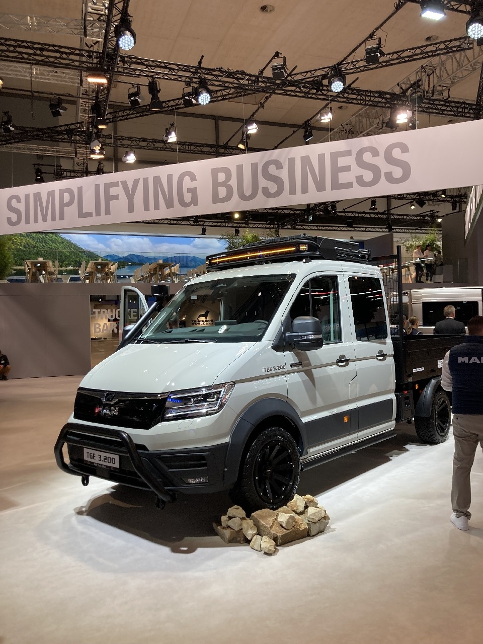 Głównym tematem prezentacji MAN Truck & Bus na targach IAA była dekarbonizacja towarowego transportu drogowego. Jako przykłady innowacyjnych i zrównoważonych rozwiązań transportowych MAN zaprezentował ciężarówki z napędem elektrycznym, wodorowym i z najnowocześniejszymi silnikami Diesla. Podczas targów odbyła się także światowa premiera pojazdu MAN eTGL, czyli 12-tonowego samochodu ciężarowego z napędem elektrycznym, który uzupełni ofertę elektrycznych pojazdów ciężarowych MAN o pojazd do lekkiego transportu dystrybucyjnego. Dzięki eTGL firma MAN będzie mogła zaoferować swoim klientom pełną gamę elektrycznych samochodów ciężarowych o masie od 12 do 50 ton – wraz z powiązanymi usługami doradztwa i serwisu, które również będą prezentowane w trakcie tego wydarzenia. Ofertę pojazdów bezemisyjnych do zastosowań specjalnych uzupełni napęd wodorowy MAN hTGX. MAN będzie pierwszym europejskim producentem samochodów ciężarowych, który od 2025 roku wprowadzi na rynek małą serię pojazdów z silnikami cieplnymi na wodór.