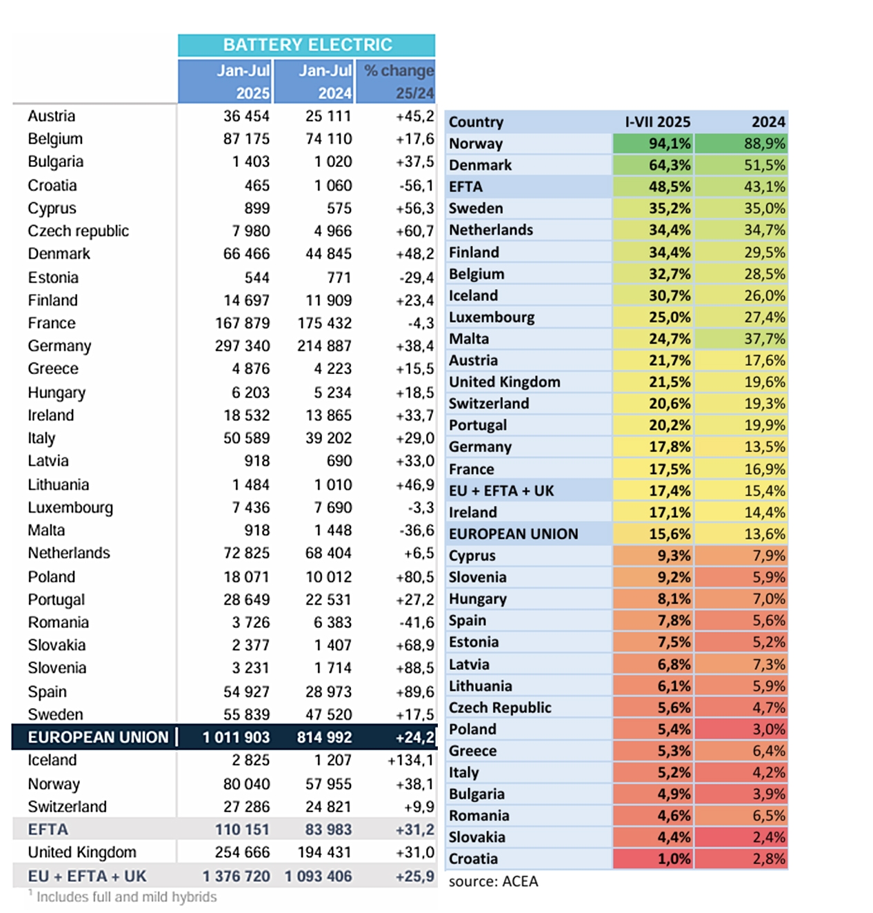 Patrząc na to wszystko wydaje się, że przedsiębiorcy powinni się powoli przyzwyczajać, że pełne przywileje podatkowe będą raczej zarezerwowane tylko dla samochodów zeroemieyjnych, a samochody posiadające silnik spalinowy będą stopniowo miały coraz mniejsze odliczenia podatkowe. I odbywa się to w sposób nieskoordynowany i nieuwzgledniający sytuację poszczególnych krajów, gdyż Europa nie jest jeszcze cała gotowa na takie zmiany w takim samym stopniu co pokazują procentowe wyniki udziału samochodów elektrycznych w poszczególnych krajach.