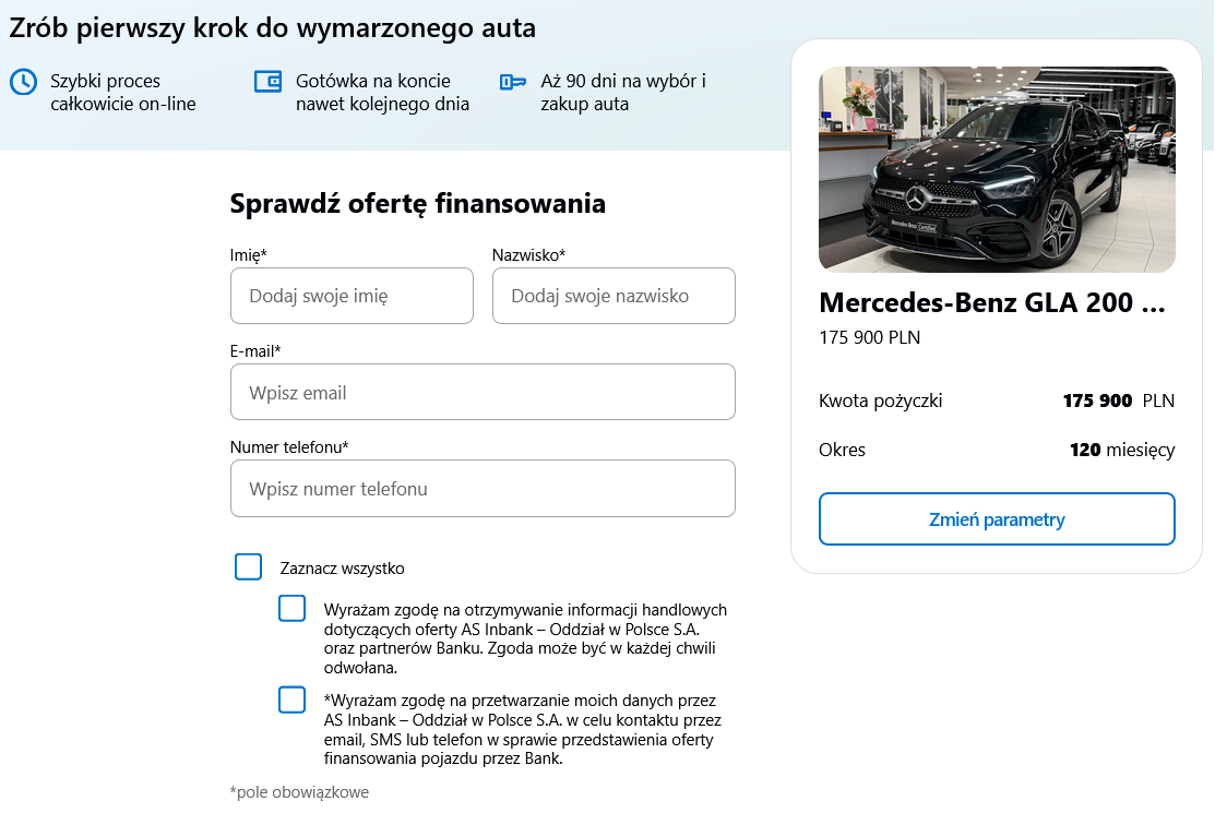 Co ciekawe "sprawdź możliwość finansowania" przez Inbank to usługa obok dotychczasowej możliwości finansowanie zakupu konkretnego auta przez dealera.