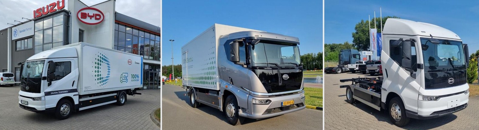 BYD Trucks, największy na świecie producent pojazdów elektrycznych, w swojej ofercie posiada wielozadaniowe elektryczne podwozie ETM6 oraz ciężarówkę dystrybucyjną ETH8. Te nowoczesne pojazdy charakteryzują się nie tylko estetycznym designem, ale również zaawansowaną technologią, bezpieczeństwem akumulatorów oraz dużym zasięgiem, co czyni je idealnym wyborem dla różnych zastosowań w logistyce i transporcie miejskim. Marka oferuję bardzo konkurencyjne warunki gwarancyjne dla pojazdów, które pozwalają na spokój i poczucie bezpieczeństwa właścicielom flot.