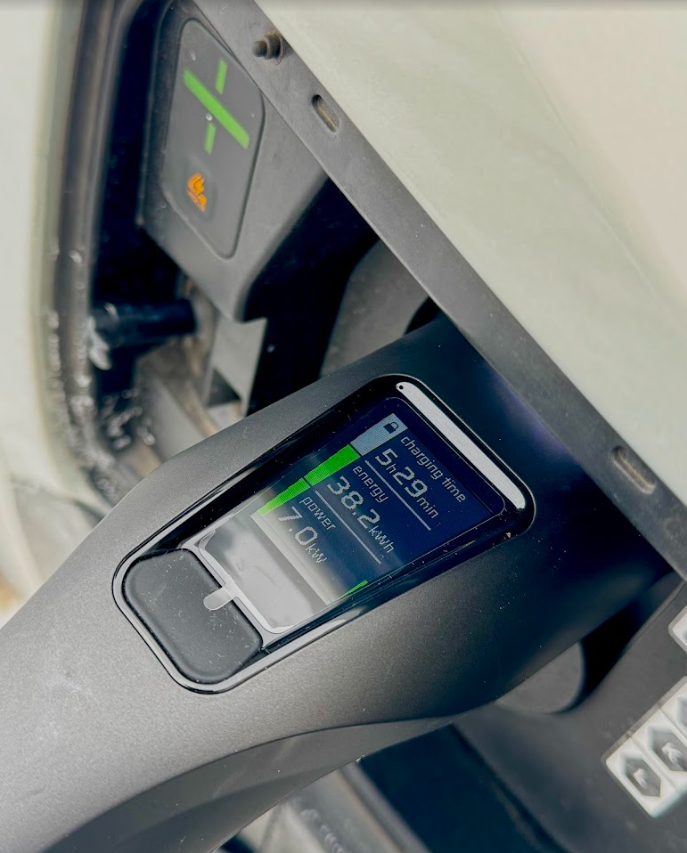 Ładowałem z publicznych DC oraz z domowego AC. W domu: 400 V, ładowarka Green Cell, 7,0 kW. Czas: 5,5 godziny, weszło 38,3 kWh przy –10°C. Bardzo dobry wynik. Na szybkich ładowarkach zimą EV3 trzyma moc, nie marudzi i nie wymaga planowania życia pod gniazdko.