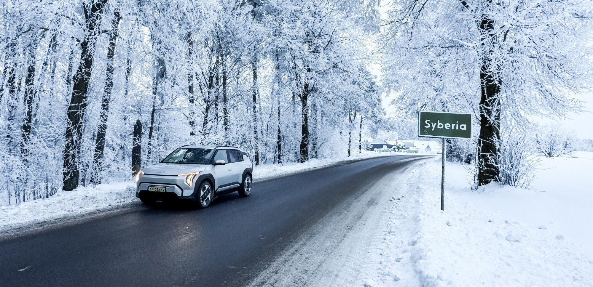 Dokąd w ogóle pojechać na zimowy test? Syberia. Dosłownie. Miejscowość w powiecie mławskim, niedaleko miejscowości Szreńsk, gdzie Technokabel ma fabrykę. Pogoda idealna na test –10°C. Idealne warunki, żeby sprawdzić auto bez marketingowej gadki.