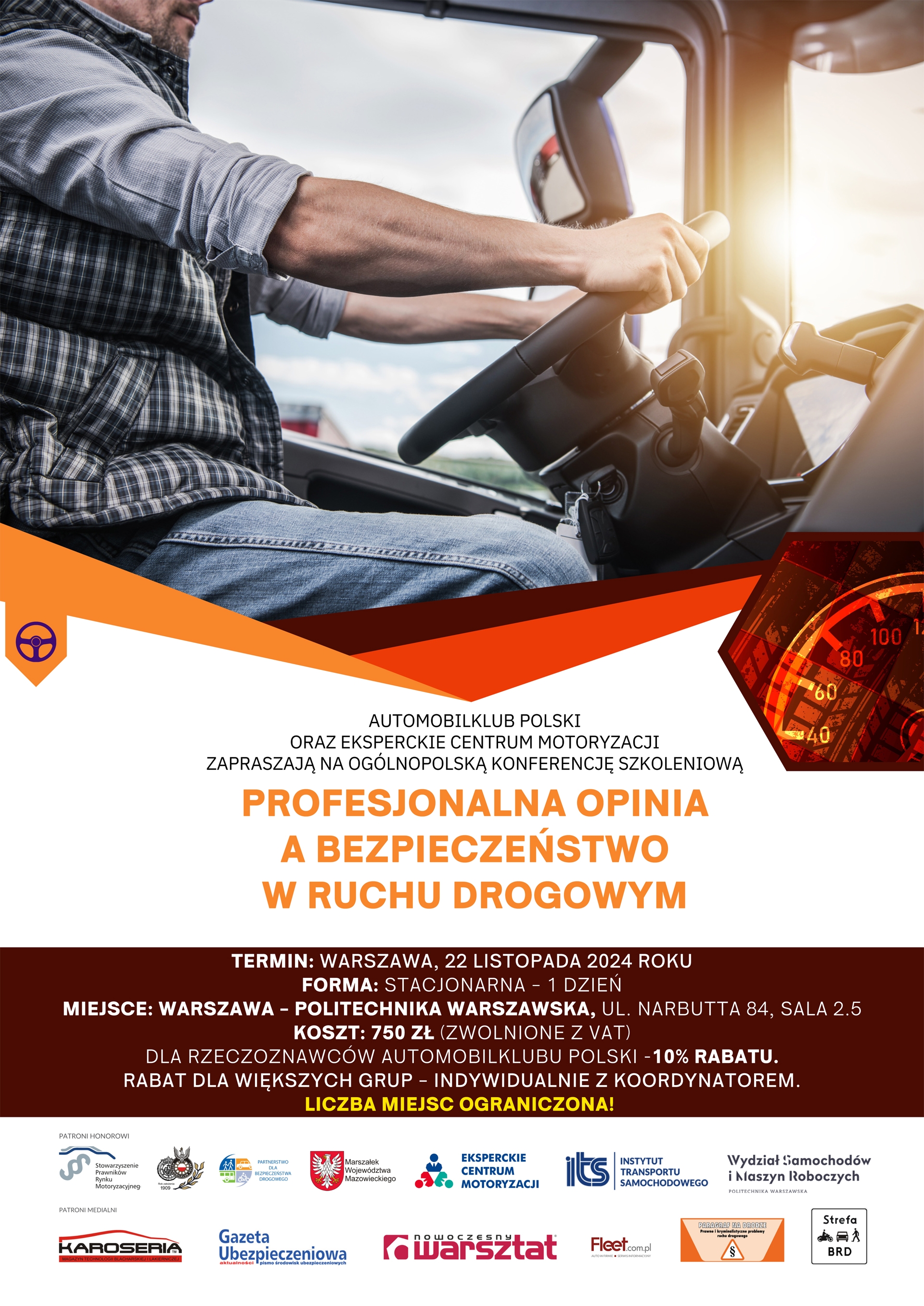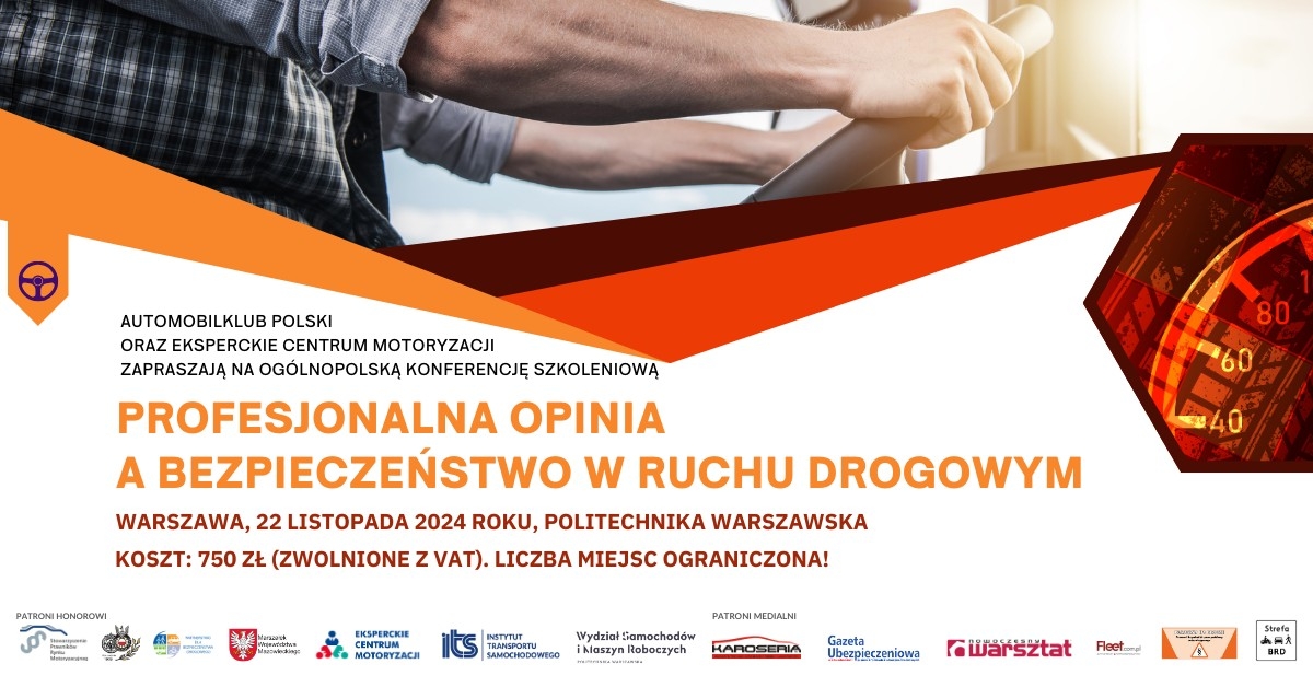 22 listopada br. roku odbędzie się w Warszawie ogólnopolska konferencja szkoleniowa „Profesjonalna opinia a bezpieczeństwo w ruchu drogowym”, organizowana przez Automobilklub Polski oraz Eksperckie Centrum Motoryzacji. Wydarzenie skierowane jest m.in. do osób zajmujących się opiniowaniem sądowym, rzeczoznawstwem, likwidacją szkód komunikacyjnych. Uczestnicy będą mieli okazję zdobyć praktyczną wiedzę, którą będą mogli wykorzystać już po zakończeniu konferencji. Magazyn „Fleet” objął patronat medialny nad wydarzeniem.
