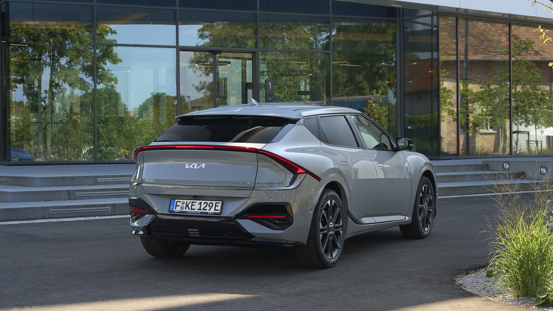Nowe EV6 przejęło wygląd najnowszych modeli marki Kia. Przód samochodu wyróżnia się eleganckimi światłami do jazdy dziennej i oświetleniem Star Map. Z tyłu lampy zespolone również obejmują technologię Star Map i wizualnie potęgują wrażenie szerokości auta.