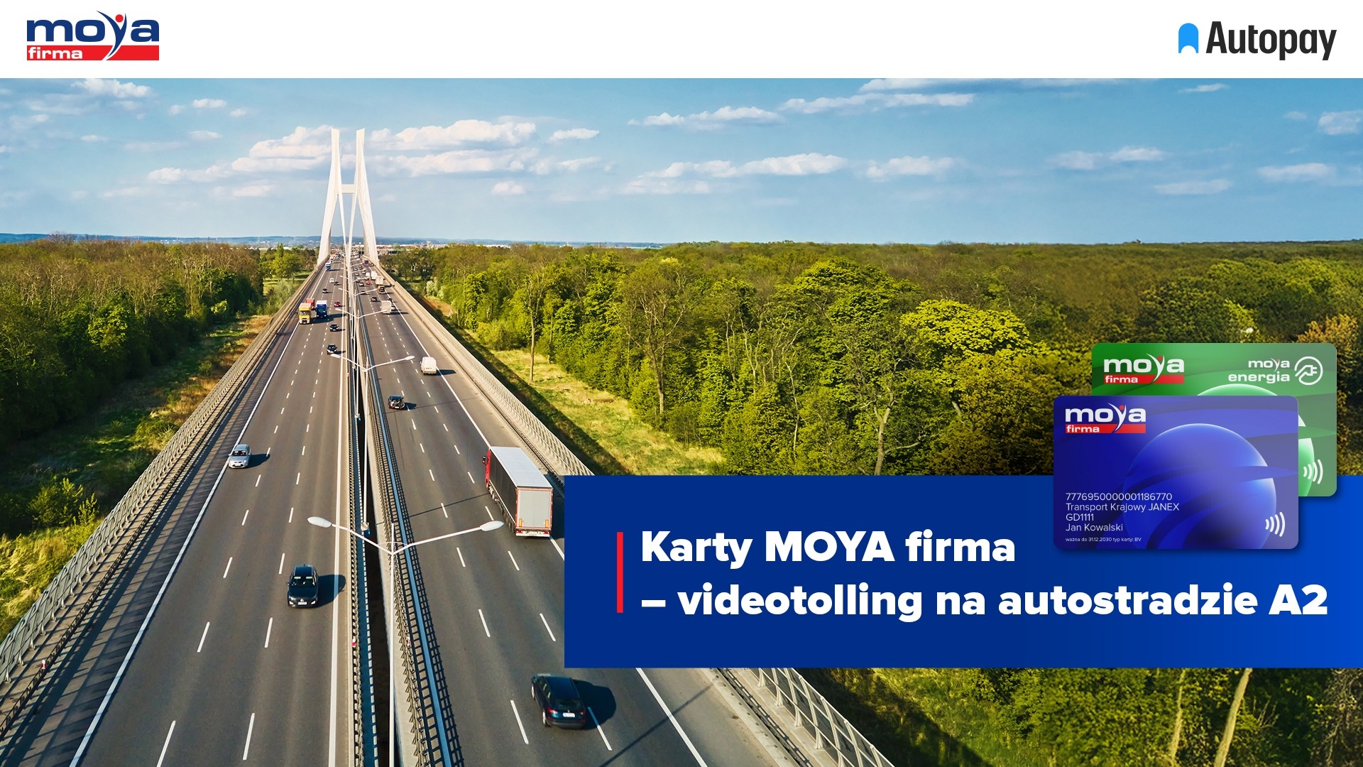 MOYA firma staje się jedną z pierwszych kart flotowych na rynku, która umożliwia przejazd wszystkimi trzema kluczowymi płatnymi autostradami w Polsce w modelu videotollingu. Usługa obejmuje autostradę A1 na odcinku Toruń- Gdańsk, autostradę A2 na odcinku Poznań- Konin oraz autostradę A4 na odcinku Kraków- Katowice. Rozwiązanie to znacząco upraszcza codzienną logistykę flot i istotnie podnosi komfort pracy kierowców.