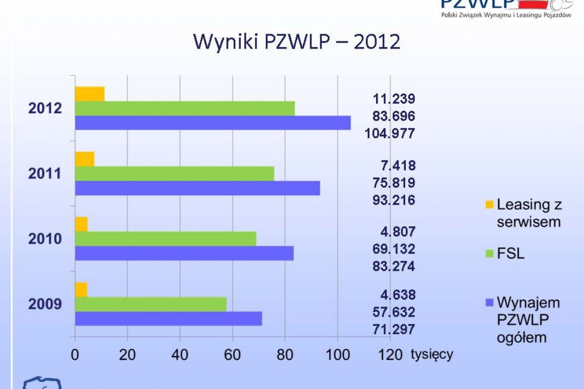 Polski Związek Wynajmu i Leasingu Pojazdów opublikował wyniki firm flotowych na koniec 2012 roku. Według statystyk podanych przez członków PZWLP, rozwój organiczny Związku wyniósł 9 procent rok do roku. Wynajem w Polsce rozwija się więc w stałym tempie. Z piętnastu raportujących firm PZWLP, czternaście zanotowało wzrosty. Według stanu na 31 grudnia 2012 roku, Związek w wynajmie długoterminowym łącznie finansował i zarządzał 104.977 pojazdami. W full service leasingu (FSL) było 83.696 aut, w leasingu z serwisem (LS) – 11.239, a w wyłącznym zarządzaniu (FM) – 10.042 samochody.