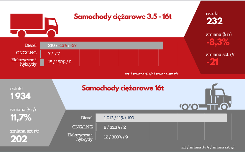 Nadal dominuje sprzedaż na firmy, ale rośnie sprzedaz indywidualna. Rośnie sprzeaż BEV, maleje udział Diesla, choć nie jest tak, że udało się te statystyki odwrócić. Co ciekawe i ważne po raz pierwszy od dłuższego czasu na plusie jest sprzedaż ciężkich samochodów ciężarowych pow. 16t.
