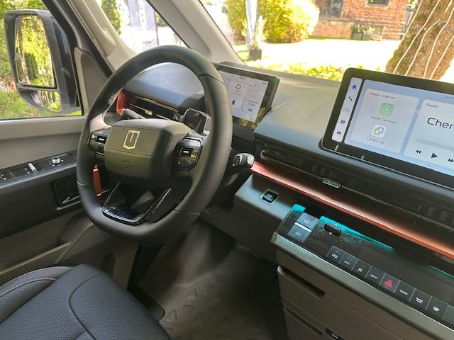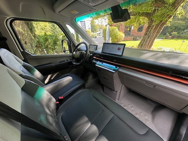 Wnętrze jest jak najbliższe samochodom osobowym. Wyposażenie obejmuje fotele z podgrzewaniem i wentylacją, podgrzewaną wielofunkcyjną kierownicę oraz wyświetlacz zestawu wskaźników z 7-calowym ekranem. Konsola centralna wyposażona jest w ekran LCD o przekątnej 12,3 cala, który obsługuje odtwarzanie multimediów, Bluetooth, bezprzewodową łączność ze smartfonem, szybkie ustawienia funkcji pojazdu i wyświetlanie obrazu z systemu kamer 360°. Do tego 3 gniazda 220 V (3.3kW) w standardzie, technologia V2L (3.3kW) Vehicle to load, interfejs wysokonapięciowy przystosowany pod podłączenie Thermoking Fridge-EV380 oraz system monitorowania wagi. System wykorzystywany do monitorowania i zarządzania masą pojazdu, zapewniające, że ładunek mieści się w limitach bezpieczeństwa oraz prawnych.