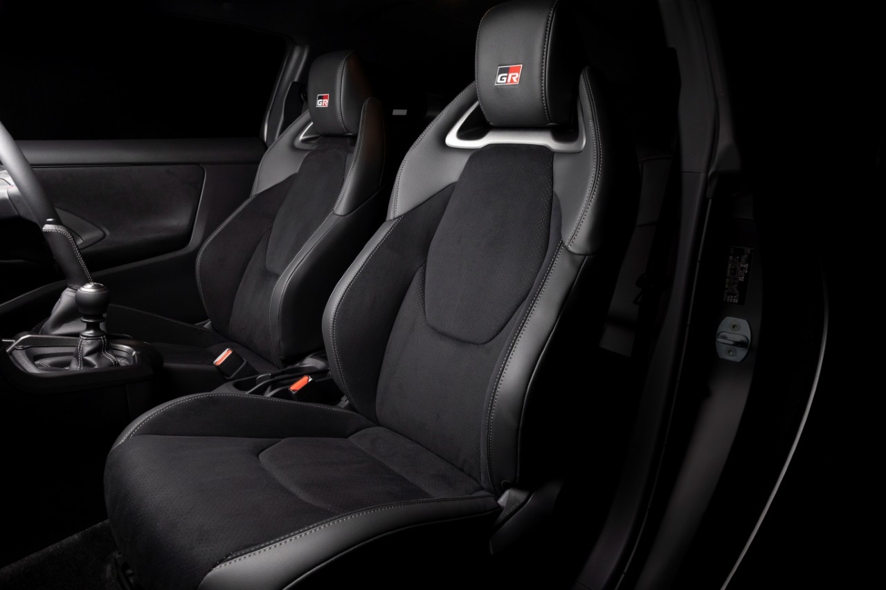 We wnętrzu GR Yarisa Sébastien Ogier 9x World Champion uwagę zwracają trójkolorowe przeszycia na kierownicy, która ma mniejszą średnicę oraz przeprojektowany układ przełączników, opracowany na bazie rajdowego samochodu GR Yaris Rally2. Skórzane obszycie pionowego hamulca ręcznego zostało wykończone szarymi przeszyciami, a pamiątkowa tabliczka z numerem seryjnym upamiętnia tytuły Ogiera. Dodatkowo na cyfrowym zestawie wskaźników dostępne są grafiki wyświetlania dla trybów „SEB" i „Morizo".