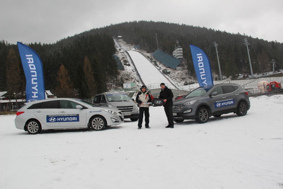 FIS 1W miniony weekend w Zakopanem, odbyło się oficjalne przekazanie floty samochodów marki Hyundai, będące efektem globalnej współpracy sponsoringowej pomiędzy firmą Hyundai, a Międzynarodową Federacja Narciarską (FIS). Samochody wykorzystywane będą na potrzeby transportowe zawodników i kadry wspierającej podczas zawodów w Wiśle 09.01.2013 i Zakopanem 11-12.01.2013.Modele, jakie udostępniła firma to: Hyundai Santa Fe nowej generacji, i40 w wersji wagon, nowy i30, nowoczesny SUV ix35 oraz mini busy H1. „Hyundai po raz pierwszy zdecydował się na sponsorowanie Mistrzostw w skokach narciarskich w ubiegłym sezonie zimowym 2011/2012, podkreślając tym samym swoje zaangażowanie w sponsoring sportowy. Wspieranie tej popularnej nie tylko w Polsce dyscypliny zimowej jest doskonałym uzupełnieniem wizerunku firmy angażującej się w promocję prawdziwych, sportowych emocji" – powiedział Marcin Okrój – Dyrektor Zarządzający Hyundai Motor Poland.